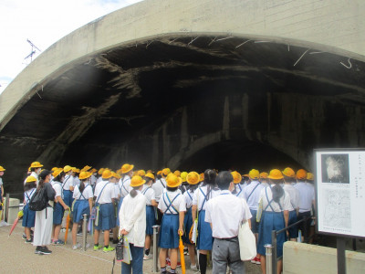 今日6年生は、「松山小中学生文化体験学習事業」で、「掩体壕」と「坂の上の雲ミュージアム」を見学させていただきました。
