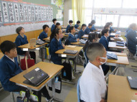 松山に住んでいる外国人の方々をお招きし、英語での交流に挑戦しました。I like ~. / I can ~.を使って自己紹介をした後、It's famous for ~.などの表現を用いながら、名所や特産物について紹介しました。質問を交えながら、熱心に耳を傾けていただきました。また、それぞれの出身国であるアルゼンチン、マレーシア、バングラデシュについても少し知ることができたようです。英語によるコミュニケーションの楽しさや、異文化理解の大切さについて実感したようです。以下、児童の感想です。「最後のシャイシャイ(shy)バイバイという言葉が心に残りました。使える英語は少ないけれど、失敗しながら覚えていきたいです。」「話したこと一つ一つに、うんうんやふむふむのような反応をしてくださって緊張が解けました。優しかったし、最後にハイタッチをした時に笑顔でバイバーイと言ってくれてうれしかったです。」3人の先生方、ありがとうございました。