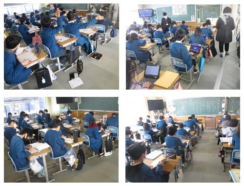 各写真は、1校時の授業風景です。ロイロノートを使った宿題の提出の仕方を確認している学級もありました。また、学期末ということもあり、力だめしのテストに取り組んでいる学級もありました。来週からは3月になりますので、進級・進学のためのまとめを頑張っています。