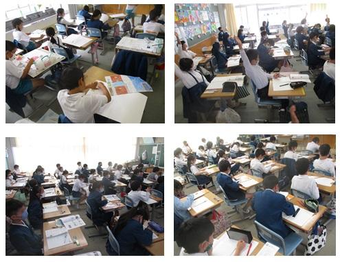 各写真は、4校時の様子です。どの学年・学級でも「学習の秋」が充実するよう、よい姿勢で、「よく聞いて、よく考える」授業を目指しています。